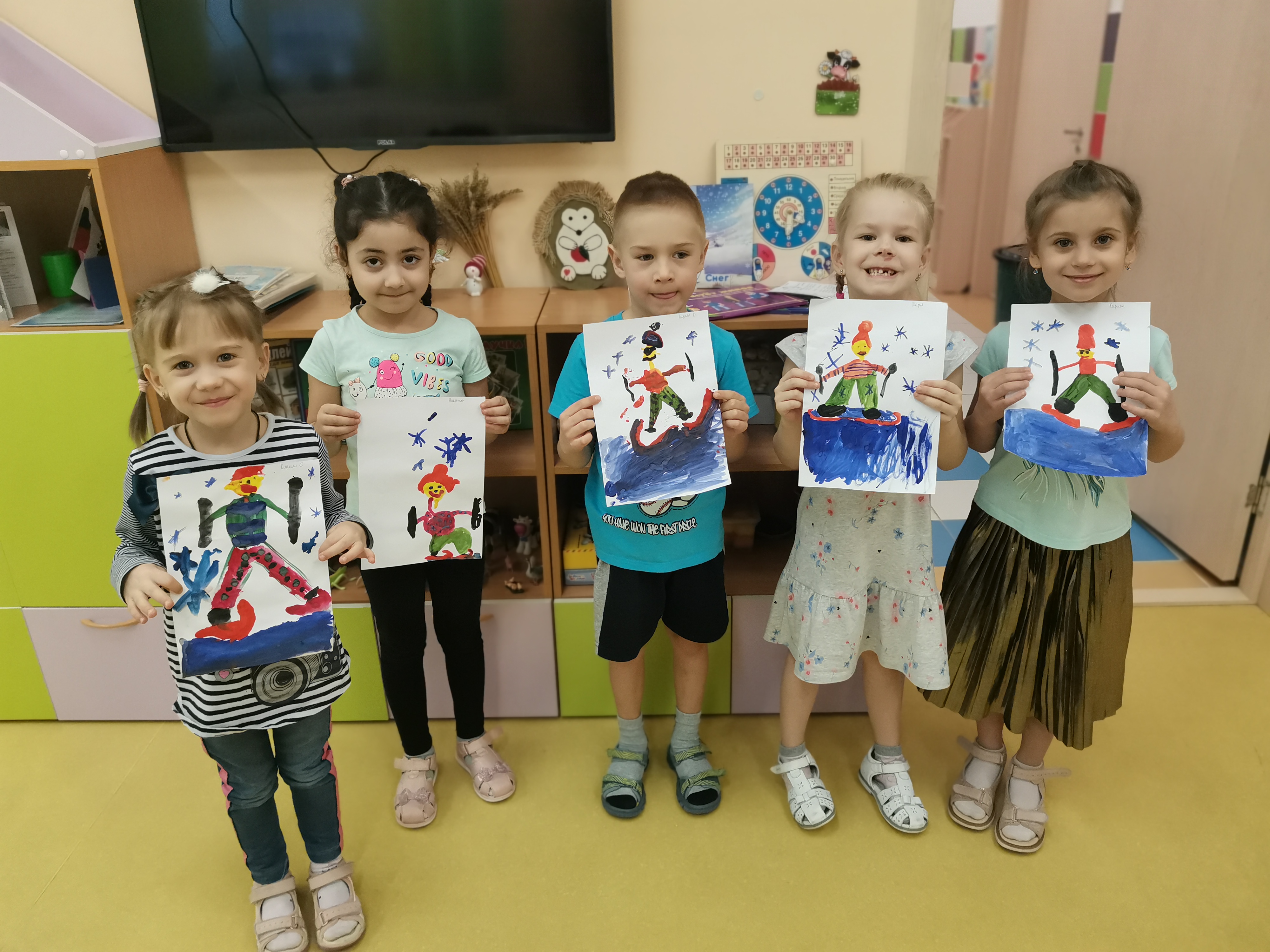 Ребята из старшей группы "Золотая рыбка" знакомились со спортсменами и нарисовали тематические рисунки.