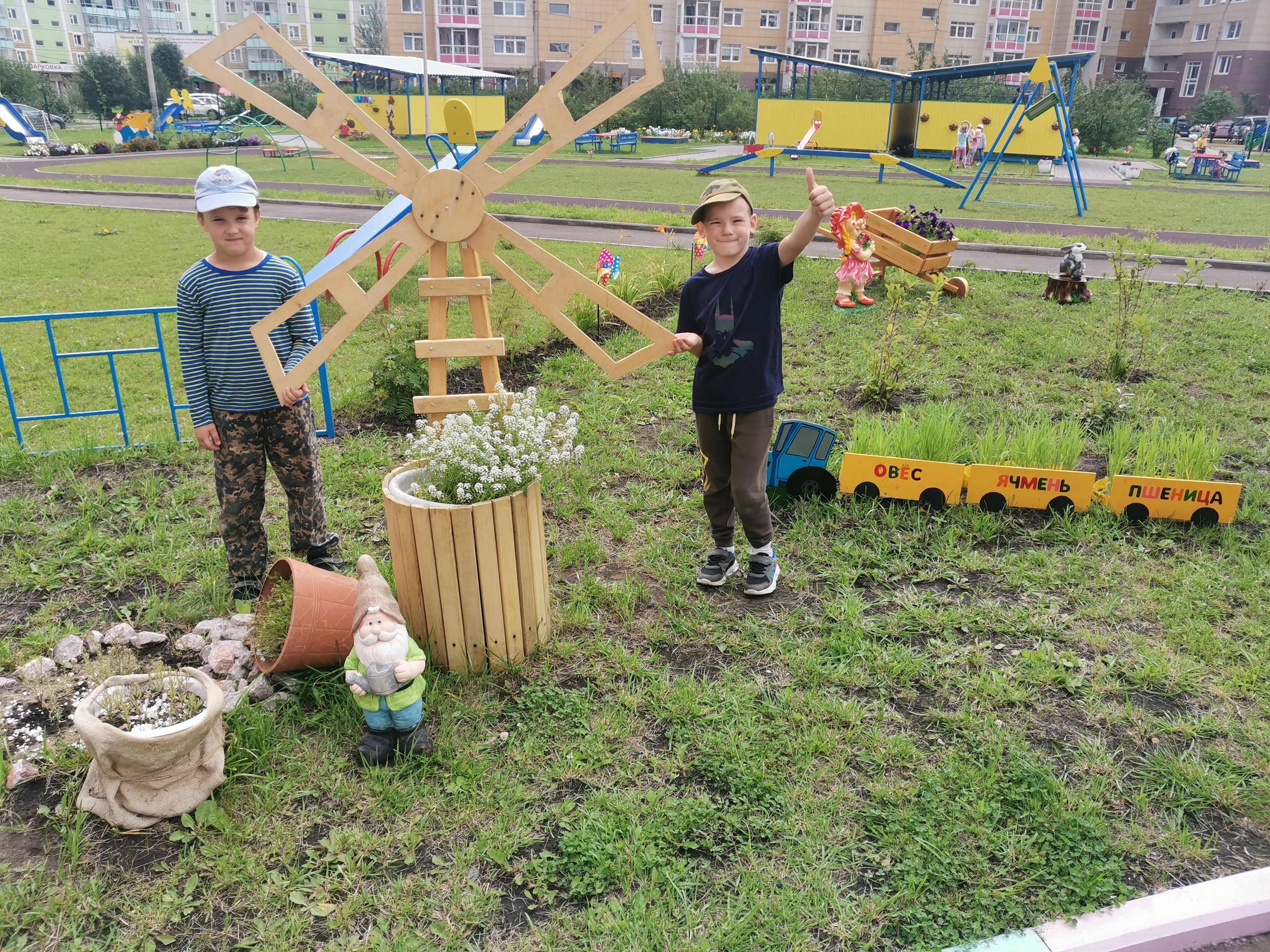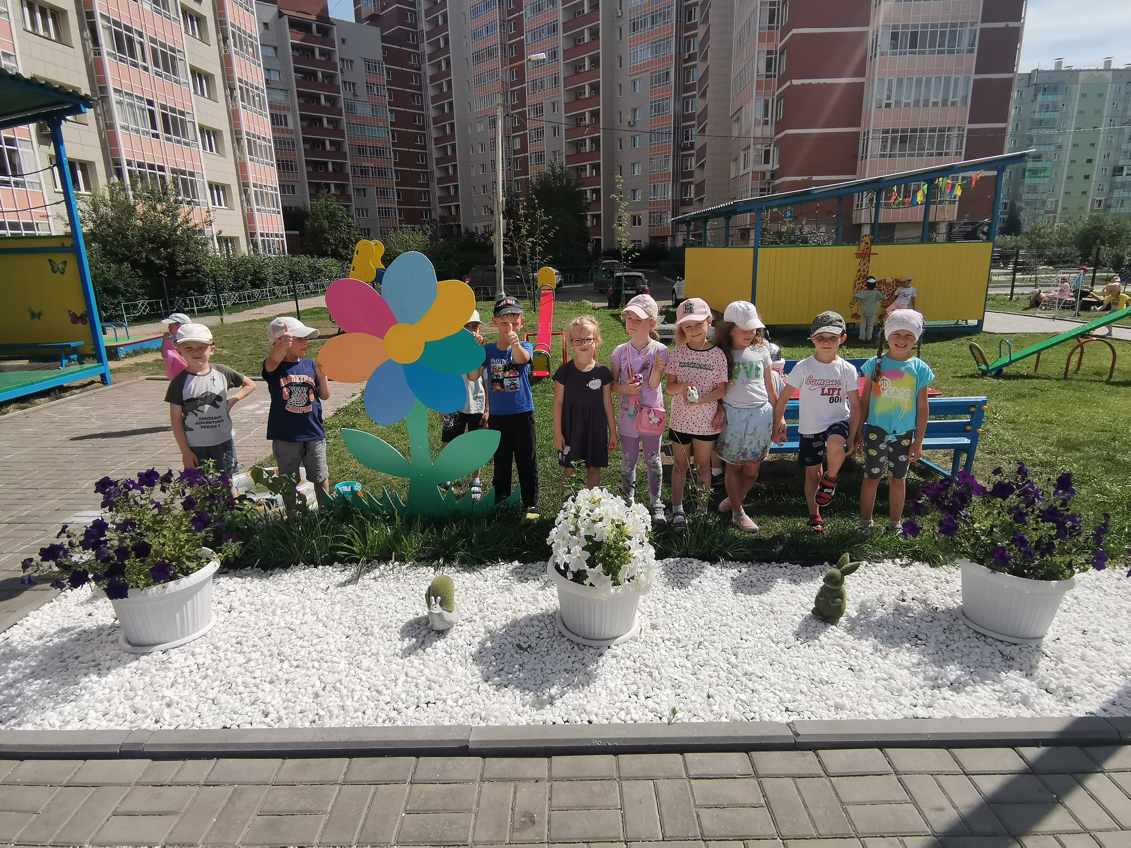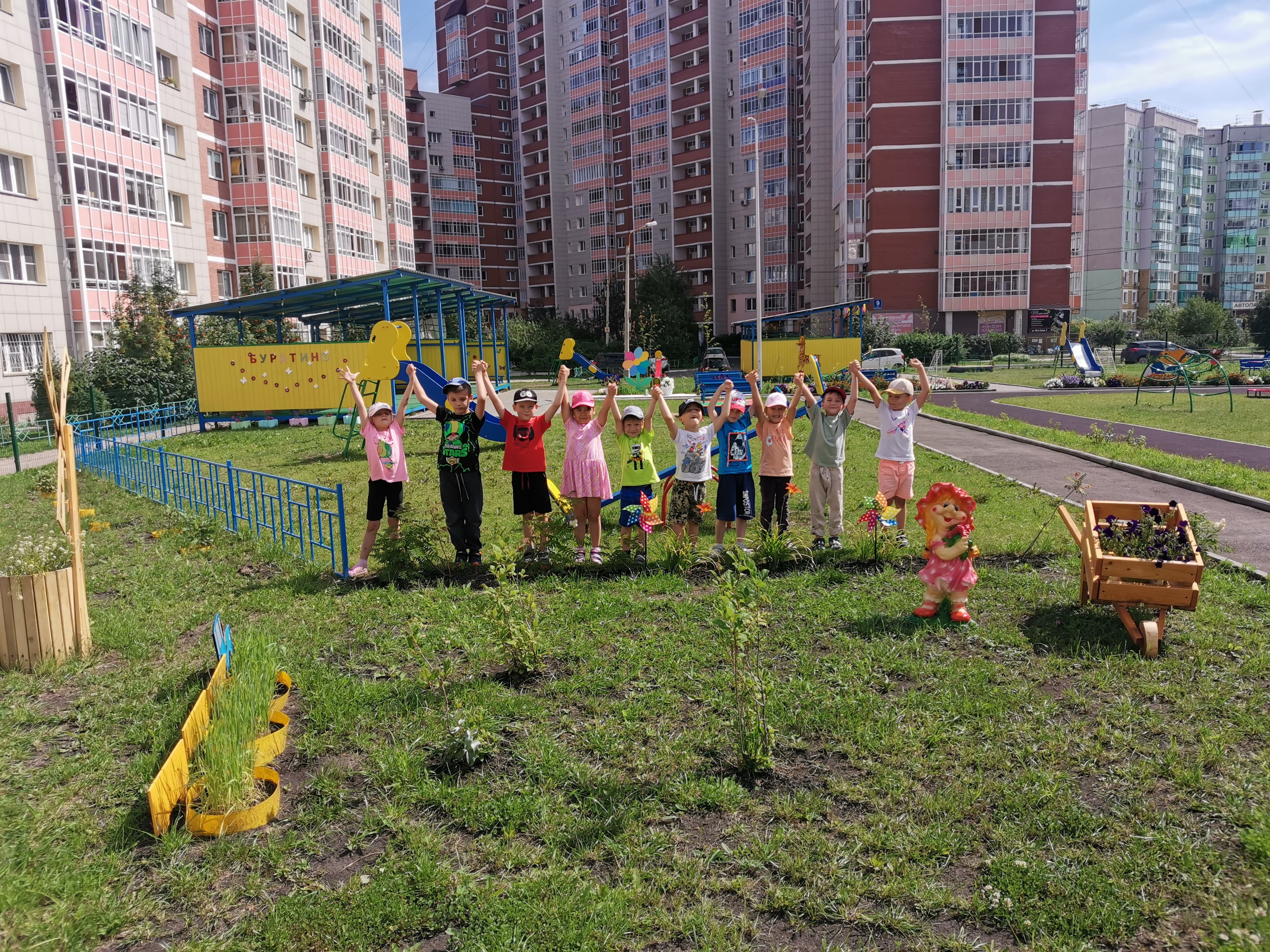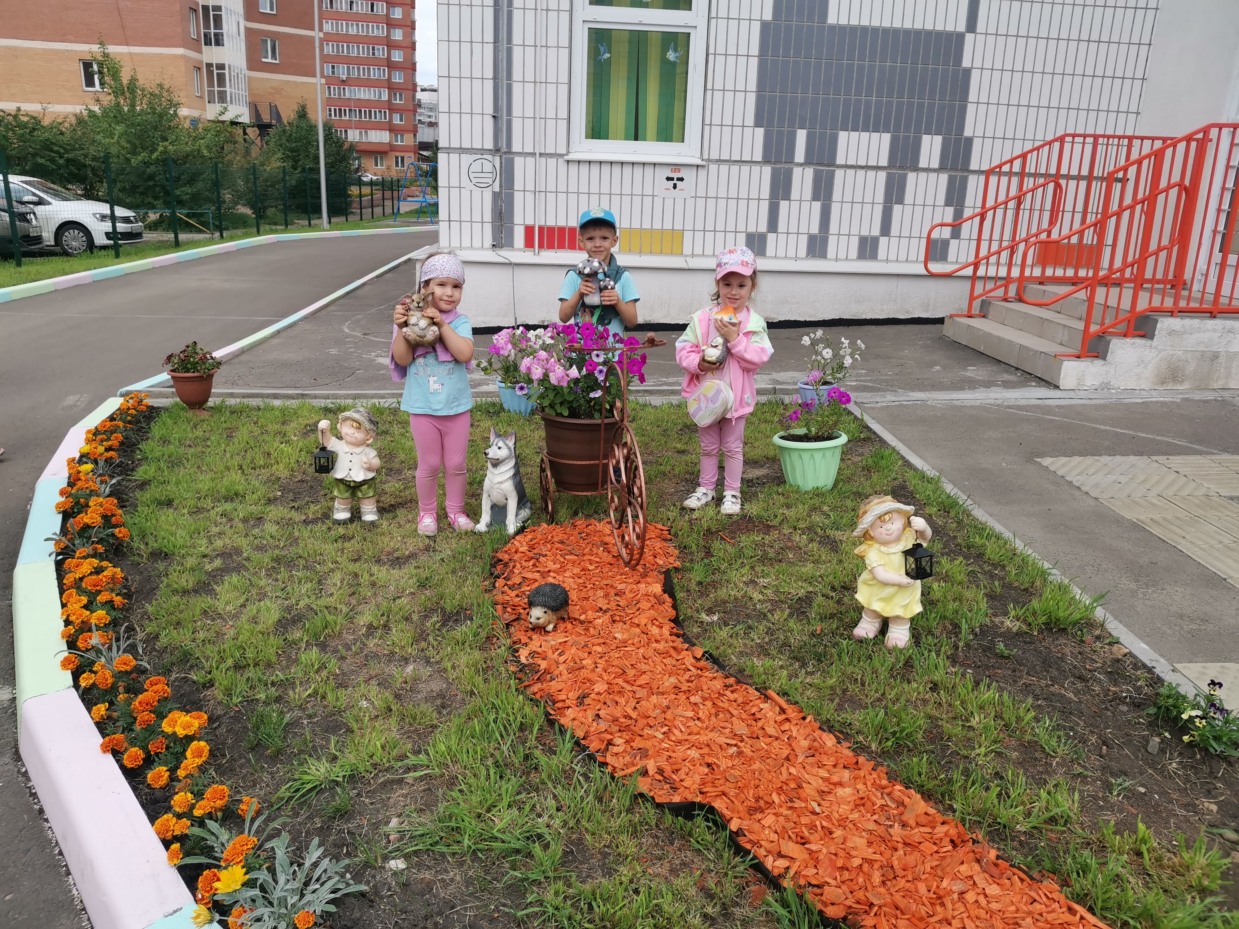 Несмотря на столь короткий срок, по благоустройству территории, совместно с педагогами и родителями, был реализован проект «В сказочном царстве, детском государстве». Все участки воспитатели, при помощи родителей оформили по сказочному сюжету, который соответствует названию группы.