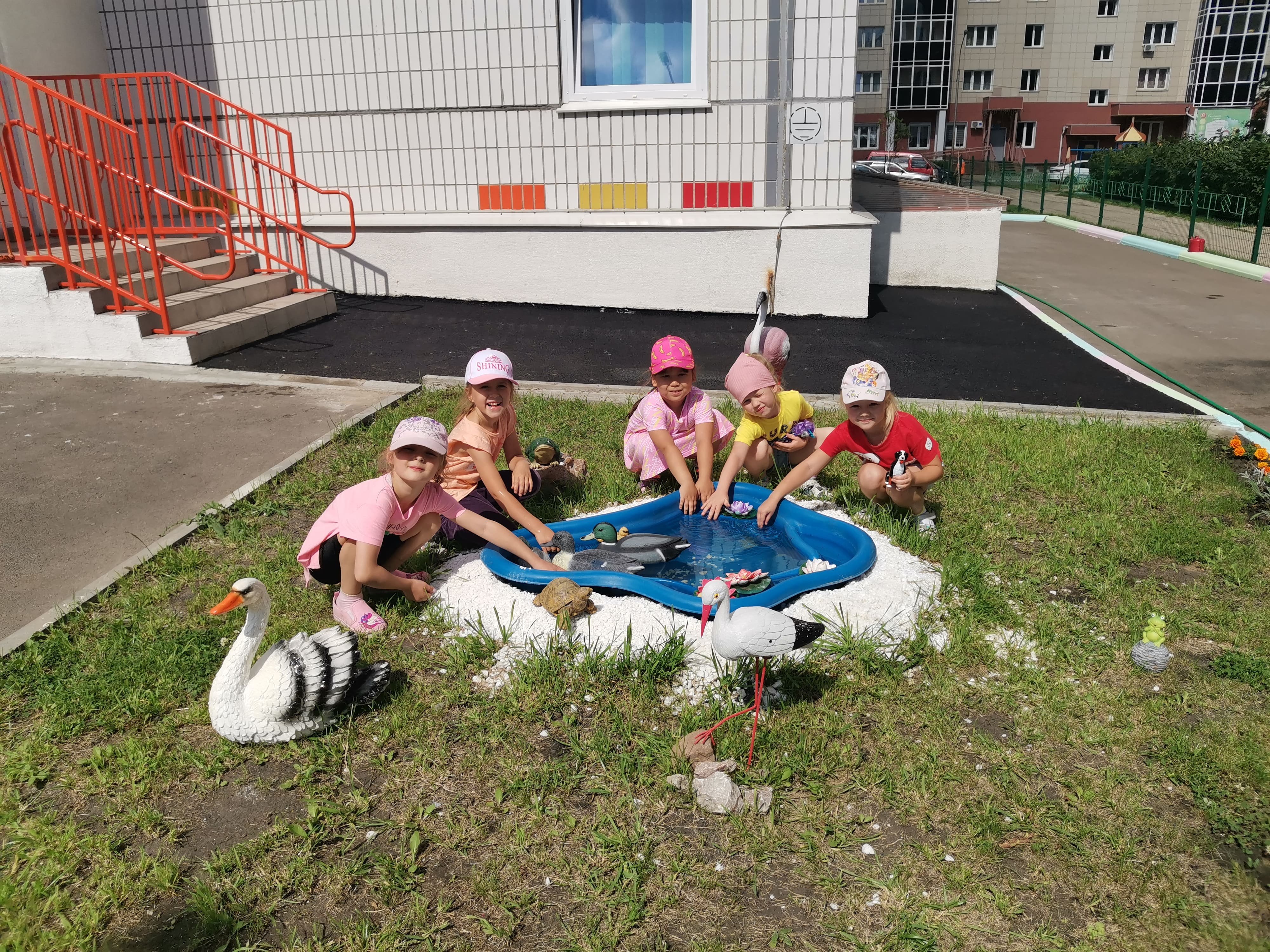 На территории детского сада радует глаза детей и взрослых локация «В водном царстве в прибрежном государстве» - это импровизированный пруд с водоплавающими птицами, который дает возможность детям позвать окружающий мир.